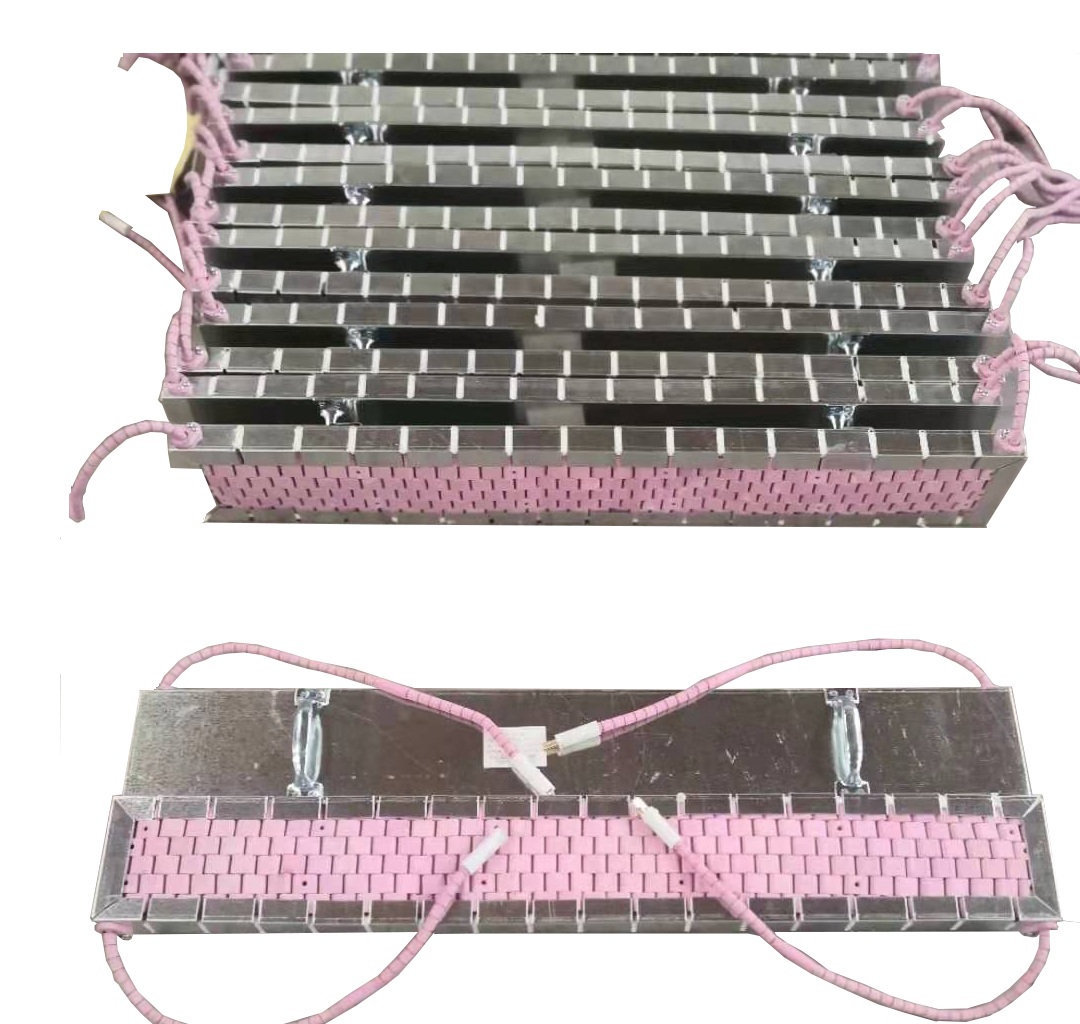 型 号 发热尺寸 (mm) 弯曲边*直边 电 压 (V) 功 率 (KW) 使用瓷片 长*宽